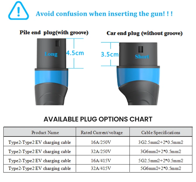 Type 2 to Type 2 32A 3 Phase ev charging cable