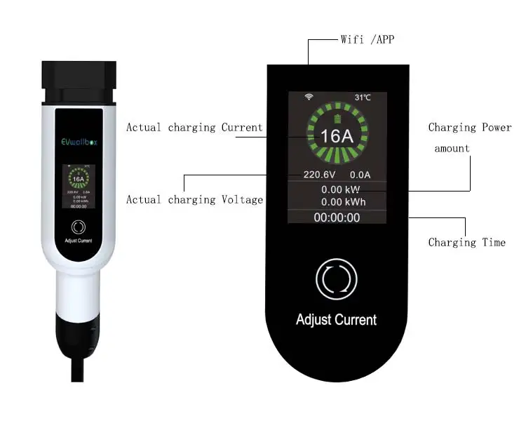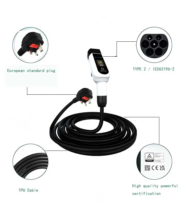 3.8kw 16A Portable Ev Charger Vehicle Charging Gun Portable Level 2 Ev Charger