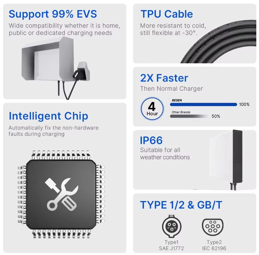 CCS1 – 100A || CCS2 – 100A || CHAdeMO – 100A || GBT- 100A